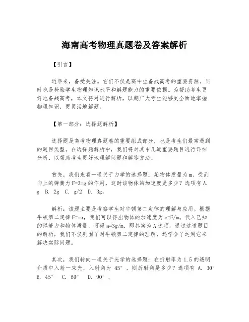 海南高考物理真题卷及答案解析【引言】近年来,备受关注。