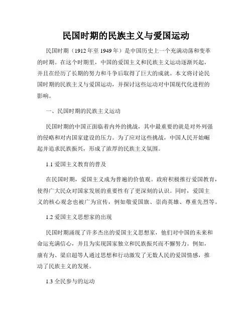 民国时期的民族主义与爱国运动民国时期(1912年至1949年)是中国历史上一个充满动荡和变革的时期。