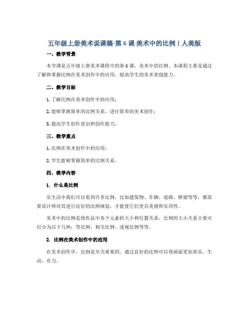 五年级上册美术说课稿-第6课美术中的比例 | 人美版一、教学背景本节课是五年级上册美术课程中的第6课,美术中的比例。