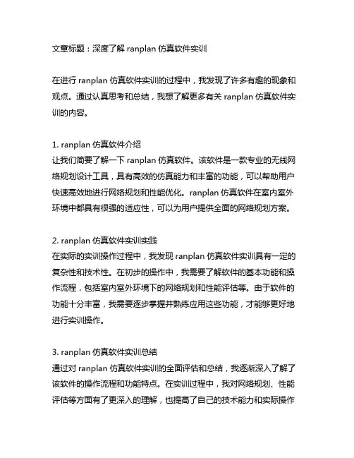 3. ranplan仿真软件实训总结通过对ranplan仿真软件实训的全面评估和总结,我逐渐深入了解了该软件的操作流程和功能特点。