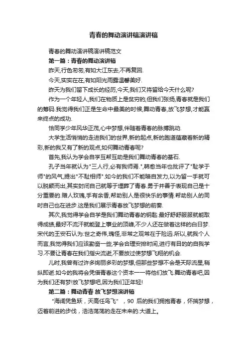 关于舞动青春演讲稿演讲稿可以提高演讲人的自信心,有助发言人更好地展现自己。