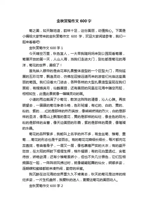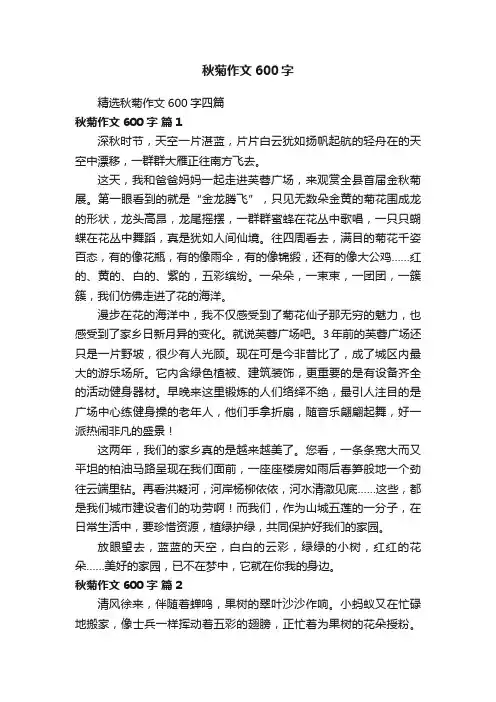 秋菊作文600字秋菊作文600字四篇无论是在学校还是在社会中,大家都不可避免地要接触到作文吧,借助作文可以宣泄心中的情感,调节自己的心情。