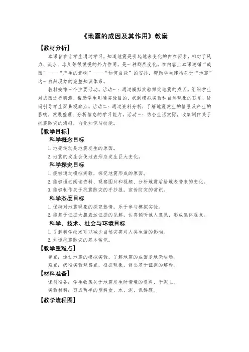 本教案将重点介绍地震的成因及其作用,并提供一些教学活动的建议。
