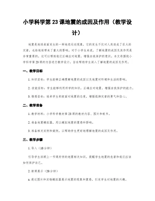 本文将围绕小学科学第23课的内容进行教学设计,旨在帮助学生深入了解地震的成因及作用。