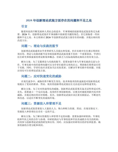 2024年创新理论武装方面存在的问题和不足之处引言随着科技的不断发展和人类社会的进步,军事领域的创新理论武装显得尤为重要。