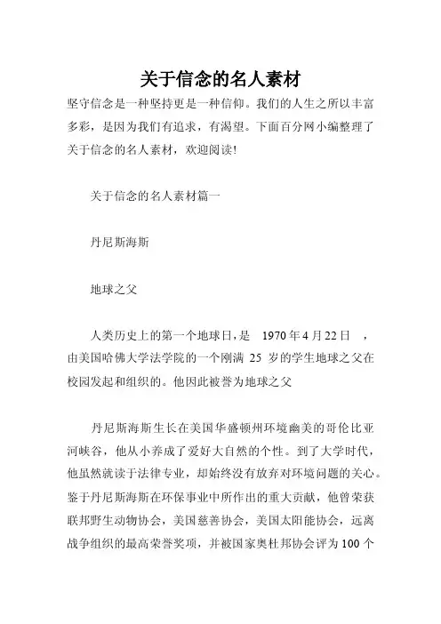 4. 坚定信仰信心信念的重要性在人们的成长中,坚定的信仰、信心和信念是不可或缺的。