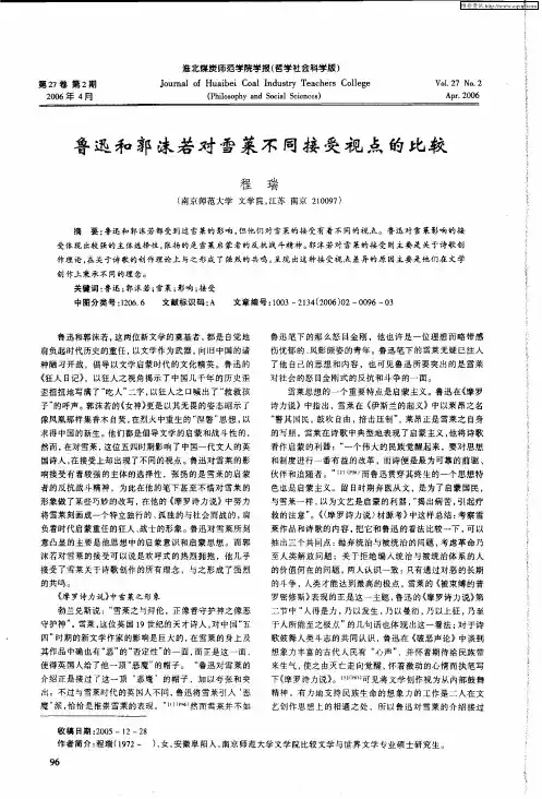 鲁迅与郭沫若的比较一、1.鲁迅:A、受古典文学熏陶,受中国民间艺术熏陶;B、幼年未产生从文思想,准备以“从医”为职业。