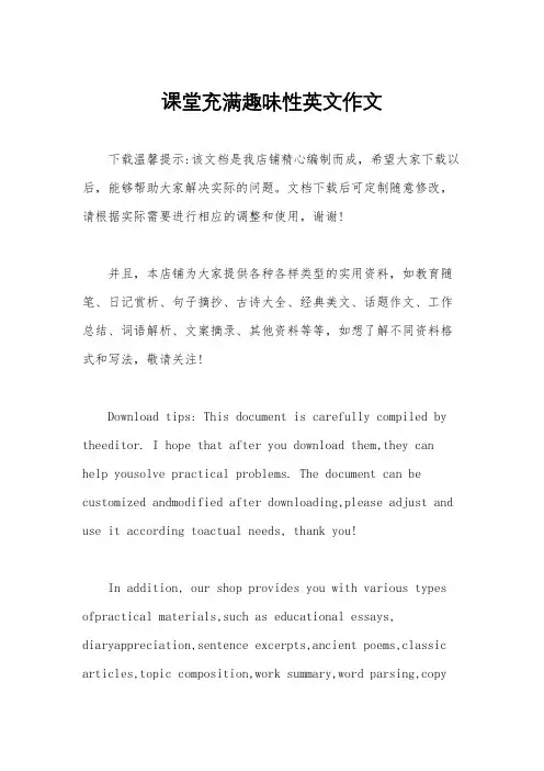 课堂充满趣味性英文作文下载温馨提示:该文档是我店铺精心编制而成,希望大家下载以后,能够帮助大家解决实际的问题。