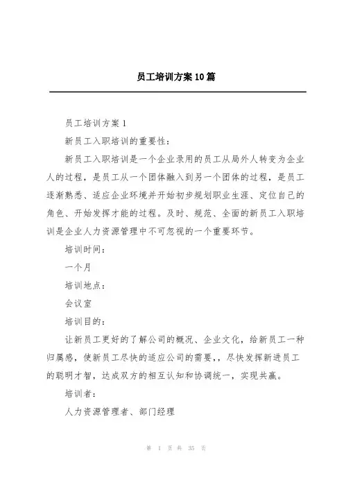 那么你有了解过⽅案吗?下⾯是⼩编帮⼤家整理的企业员⼯培训⽅案流程(通⽤10篇),希望对⼤家有所帮助。
