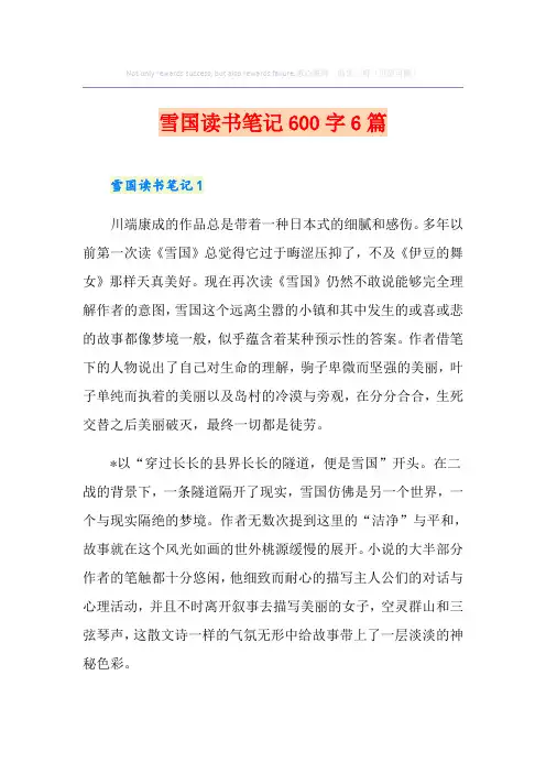 雪国读书笔记雪国读书笔记1昨晚与今早读了川端康成的《雪国》,约莫读了一半。
