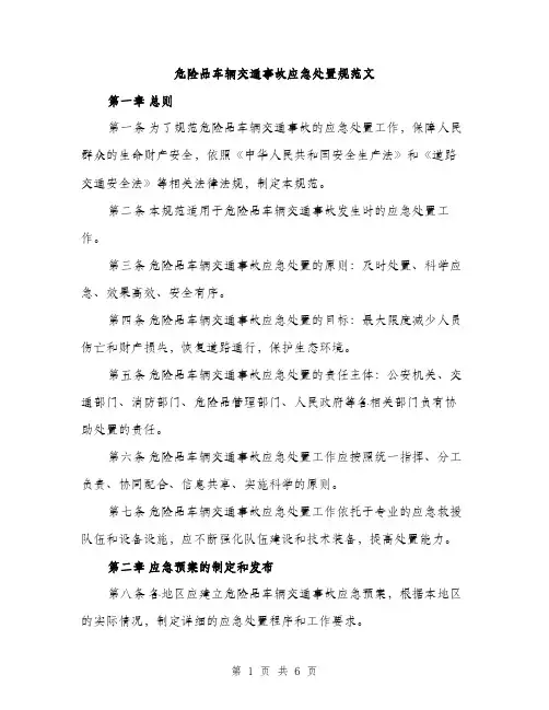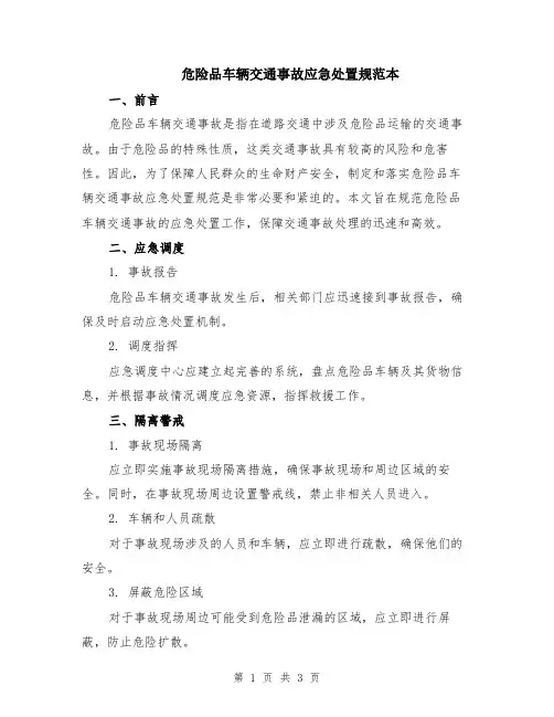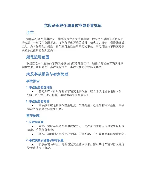 危险品车辆交通事故应急处置规范引言危险品车辆交通事故是一种特殊而危险的交通事故。