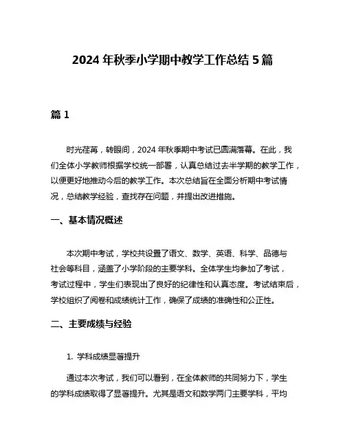 小学期中学校工作总结范文5篇篇1一、引言伴随着期中考试的落幕,我校本期的教学工作也进入了总结阶段。