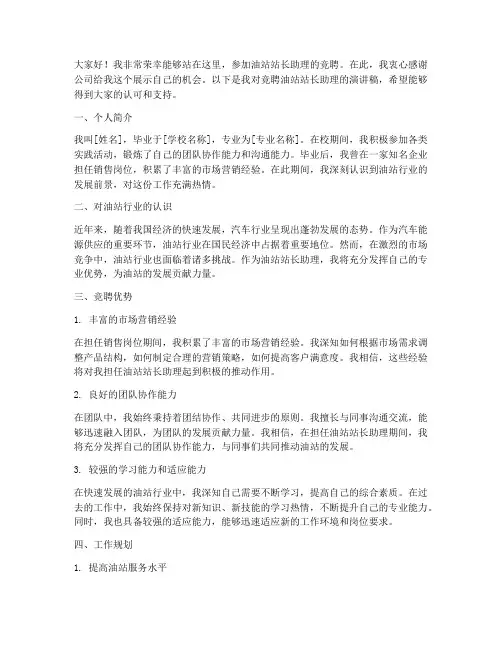 站长助理竞聘演讲稿模板尊敬的评委老师们,亲爱的同学们:大家好!我是站长助理竞聘的候选人XXX,首先我要感谢评委老师们给我这个宝贵的机会。