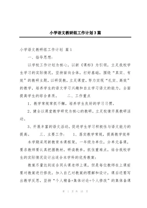 小学语文教研组第二学期工作计划三篇一、指导思想在教导处的领导下,坚持以学校教学工作计划为指导,以课堂教学为中心,以课程改革为突破,以课程标准等教育理论为基本行动指南,牢固树立以学生为中心的教育观。
