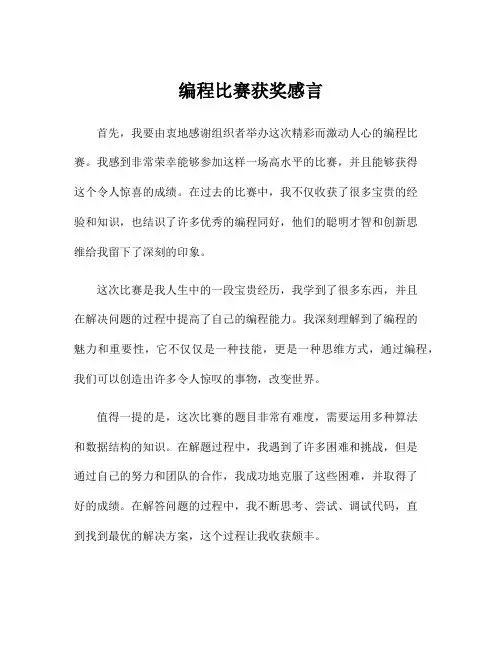 计算机编程比赛获奖感言发言稿