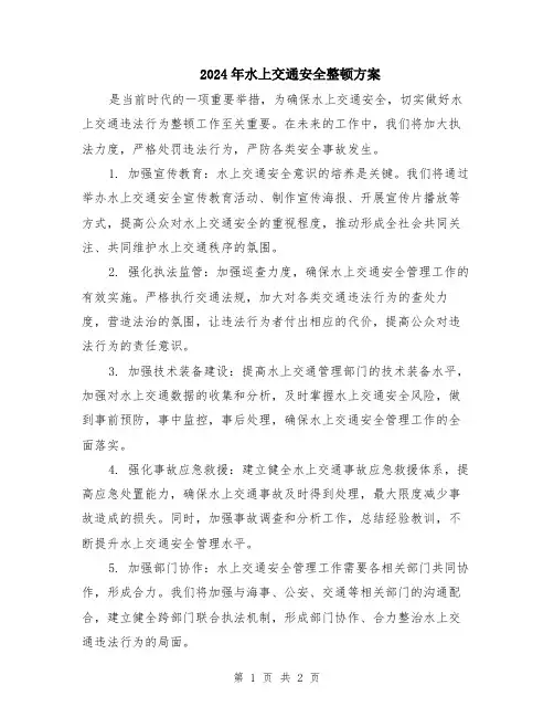 2024年水上交通安全整治方案的制定对于提升水上交通安全水平至关重要。