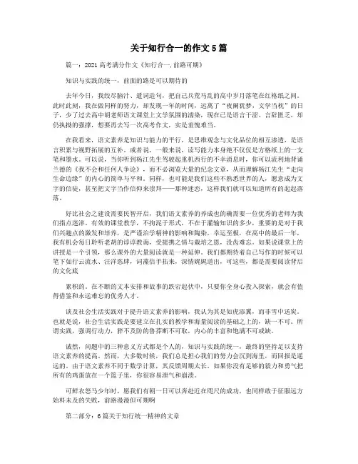 知行合一高考作文5篇各位读友大家好!你有你的木棉,我有我的文章,为了你的木棉,应读我的文章!若为比翼双飞鸟,定是人间有情人!若读此篇优秀文,必成天上比翼鸟!知行合一高考作文一:知行合一(2855字)知行合一,是中国传统教育的核心。