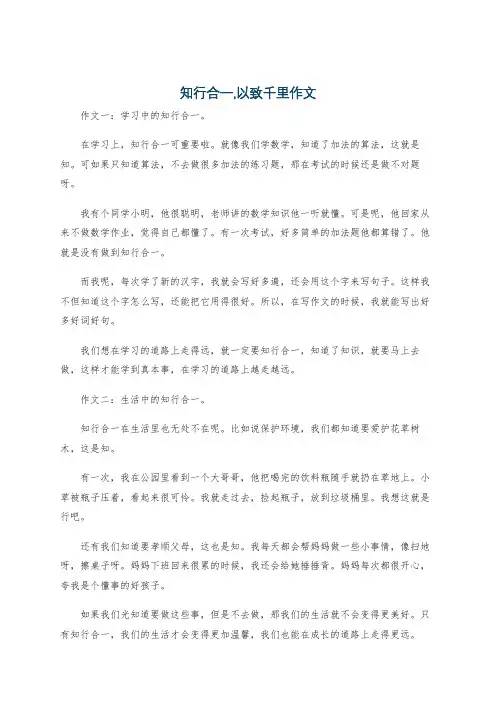 知行合一,以致千里作文作文一:学习中的知行合一。
