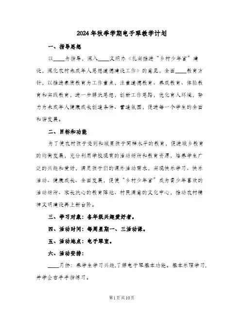 本文档将介绍电子琴兴趣小组教学计划的详细内容,包括教学目标、教学内容和教学方法等。
