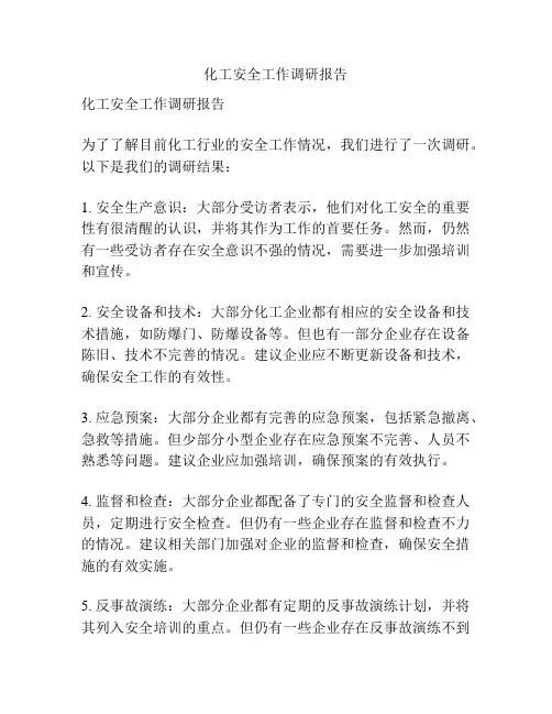 化工安全工作调研报告