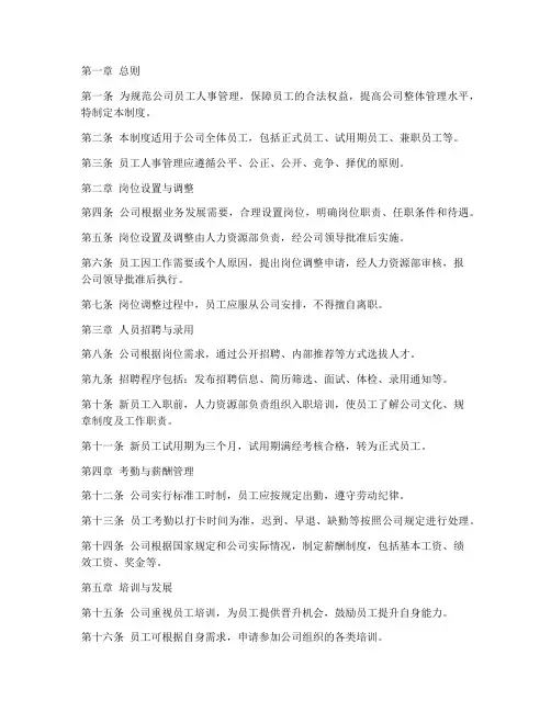 第一章总则第一条为规范公司员工人事管理,保障员工的合法权益,提高公司整体管理水平,特制定本制度。
