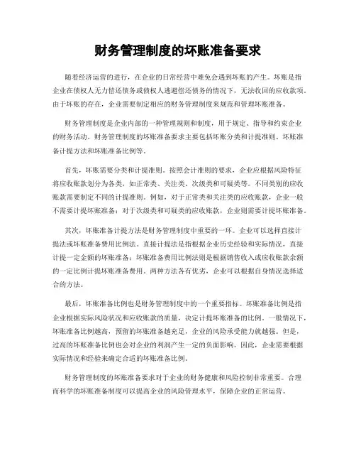 由于坏账的存在,企业需要制定相应的财务管理制度来规范和管理坏账准备。