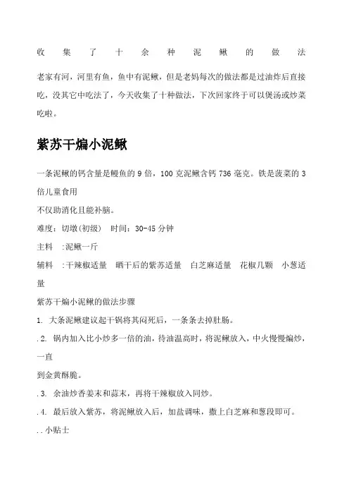 4种泥鳅的做法老家有河,河里有鱼,鱼中有泥鳅,但是老妈每次的做法都是过油炸后直接吃,没其它中吃法了,今天收集了几种泥鳅的做法,下次回家终于可以煲汤或炒菜吃啦。