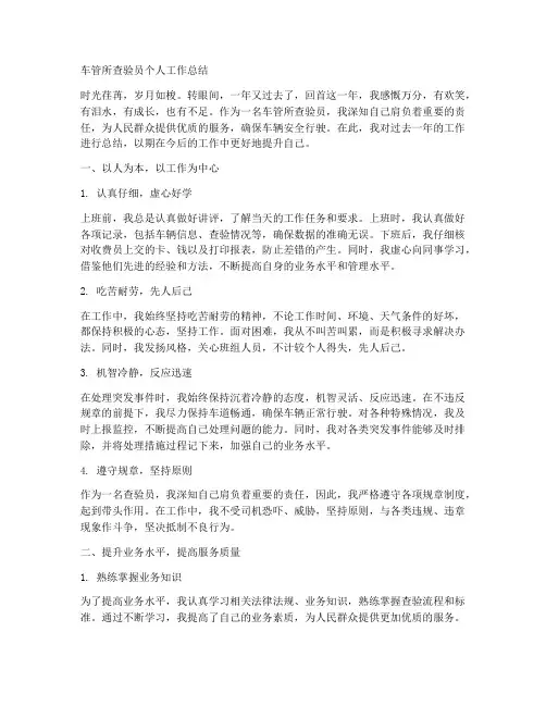 车管所查验员个人工作总结时光荏苒,岁月如梭。