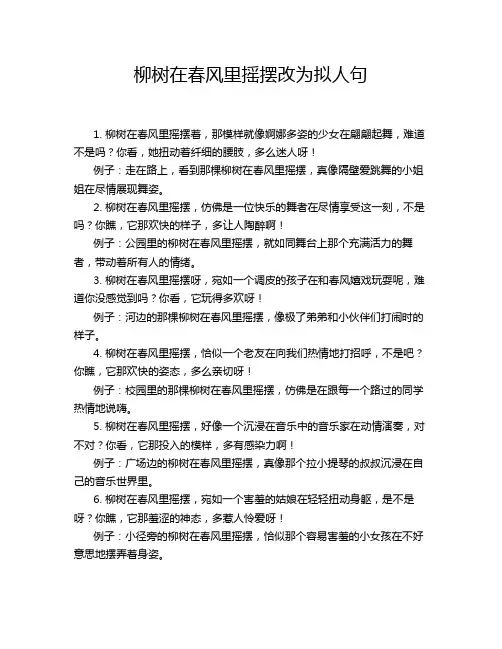 柳树拟人句1.微风中,柳树弯着腰,好像在和小朋友们打招呼呢。