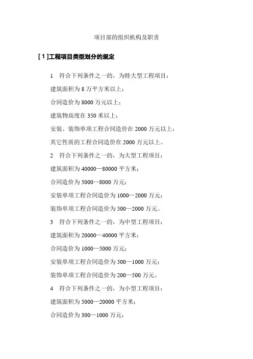 项目部机构设置、岗位职责及管理制度一、项目部机构设置的原则和总体要求根据以往的项目施工管理经验,设立本项目的施工管理组织机构------项目经理部(以下简称“项目部”),全面实施对本项目的各项管理。