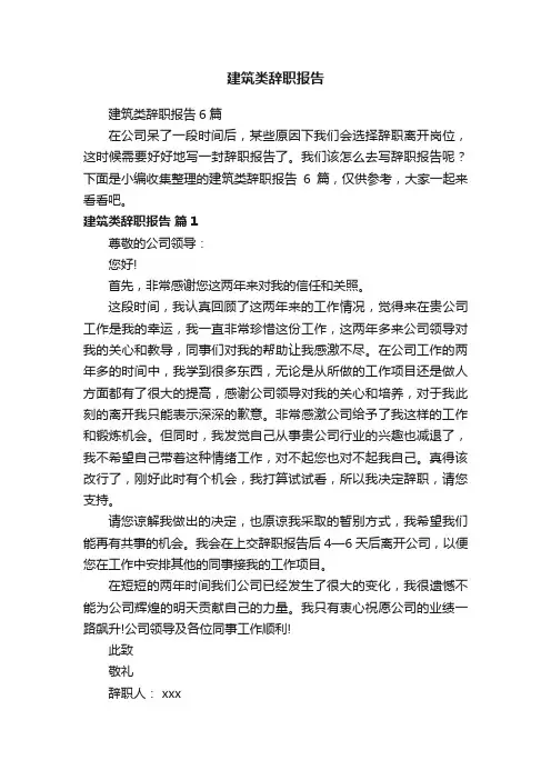 最新建筑类辞职报告建筑辞职报告书(大全八篇)建筑类辞职报告建筑辞职报告书篇一我从大学毕业至今已经在公司工作了5年时间。