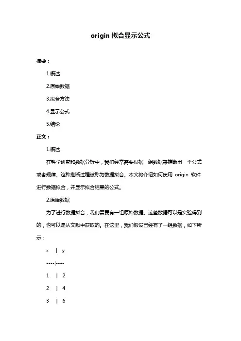 (注:文章内容仅供参考)2. origin如何拟合函数的一部分:2.1 函数拟合方法概述:在科研和实验过程中,经常需要将实验数据进行拟合,以找到最佳的函数形式来描述这些数据。