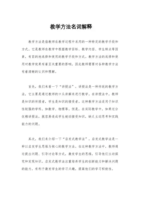 教学方法名词解释教学方法是指教师在教学过程中采用的一种特定的教学手段和方式。