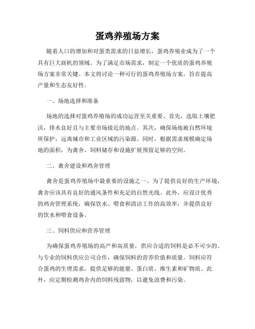 蛋鸡养殖场方案1. 背景介绍随着人们对健康和营养的关注日益增长,蛋制品的需求也逐渐上升。