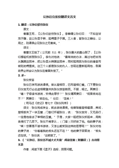 公孙衍穷张仪的故事苏秦公孙衍是什么关系