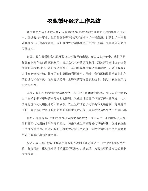随着社会经济的发展和人们环保意识的增强,农业循环经济已经成为当前农业发展的主要趋势之一。
