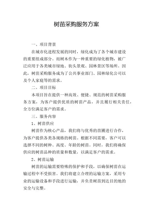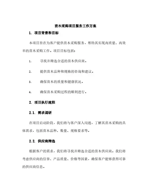 苗木采购项目服务工作方案苗木采购项目服务工作方案1. 背景和目标苗木采购项目是指为了满足特定需求而进行的苗木采购活动。