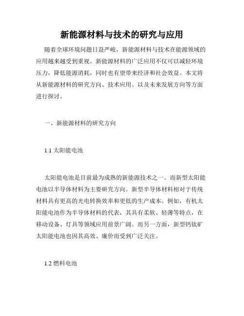 新能源技术、新产品、新工艺、新材料应用本文档旨在讨论新能源技术、新产品、新工艺和新材料的应用领域和潜在影响。