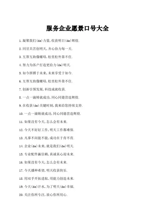 公司愿景口号50则1. 努力为客户打造更给力的明天。