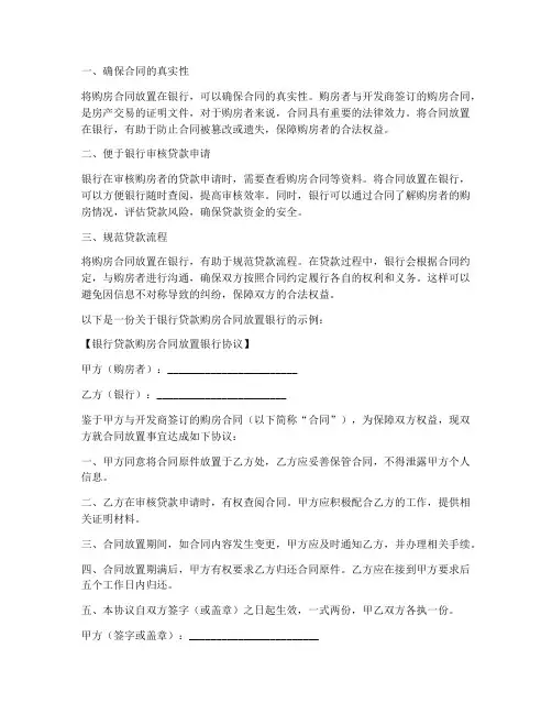 一、购房合同在银行的作用购房合同是购房者与开发商之间签订的具有法律效力的文件,明确了双方的权益和义务。