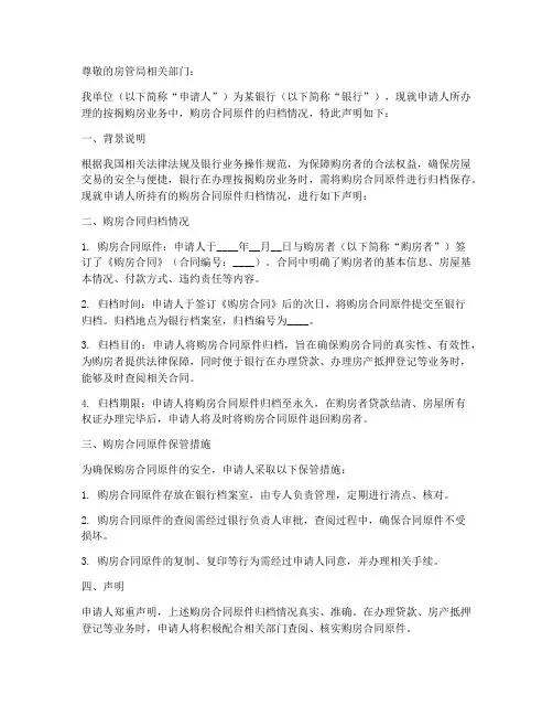 二、房产抵押购房合同是否需要放在银行1. 合同原件需妥善保管房产抵押购房合同原件应由购房者本人妥善保管。