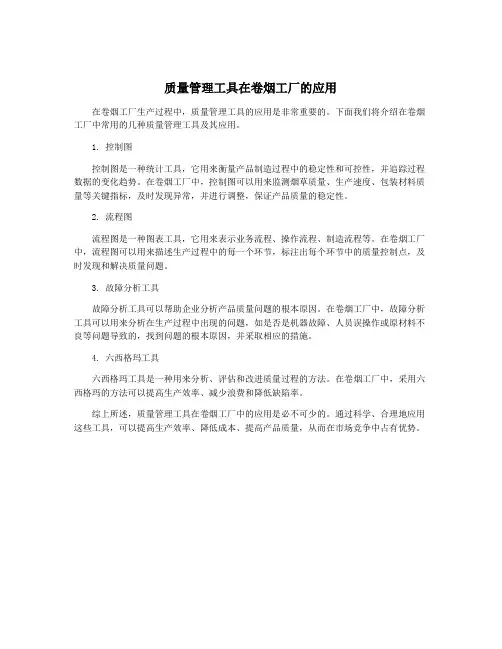 烟草行业六西格玛管理实施可行性分析一、烟草行业实施六西格玛研究的意义1、以六西格玛管理方法为平台,提高精细化管理水平精细化管理的水平需要一种量化的标准或指标来衡量,而西格玛水平正是评价一个过程满足顾客要求的质量能力水平的指标,是一种国际公认的评价指标,因此实施六西格玛管理方法可以测评出卷烟厂的精细化管理水平,并找出赶超目标,持续改进,不断超越。