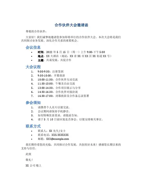 大家好!我们诚挚地邀请您参加即将举行的合作伙伴大会。