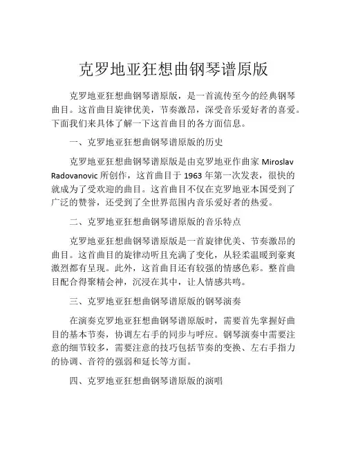 一、克罗地亚狂想曲钢琴谱原版的历史