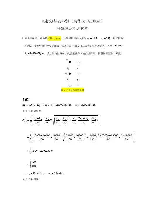 《建筑结构抗震》(清华大学出版社)计算题及例题解答1. 某两层房屋计算简图如图1所示。