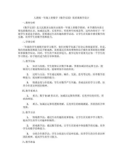 教学过程:一、导入(5分钟)1. 教师带领学生进入数学乐园,让学生观察乐园中的各种数学元素。