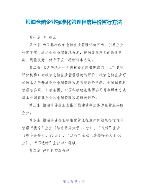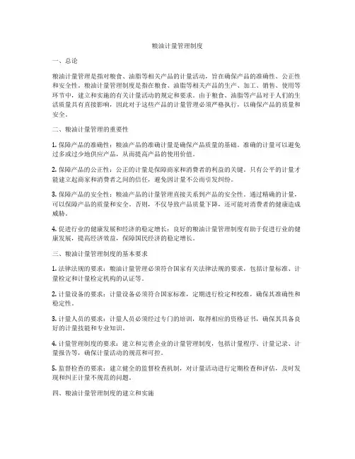 粮油计量管理制度一、总论粮油计量管理是指对粮食、油脂等相关产品的计量活动,旨在确保产品的准确性、公正性和安全性。