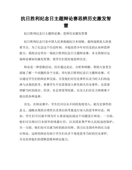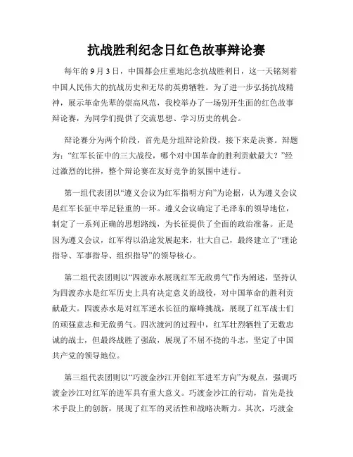 抗战胜利纪念日红色故事辩论赛每逢抗战胜利纪念日,我们都会怀念那段不屈不挠的历史,缅怀无数为国家献出宝贵生命的英雄。