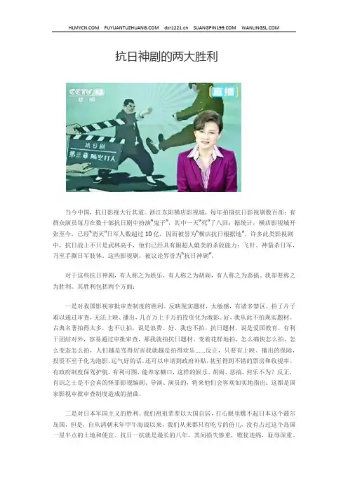 抗日神剧的两大胜利当今中国,抗日影视大行其道。