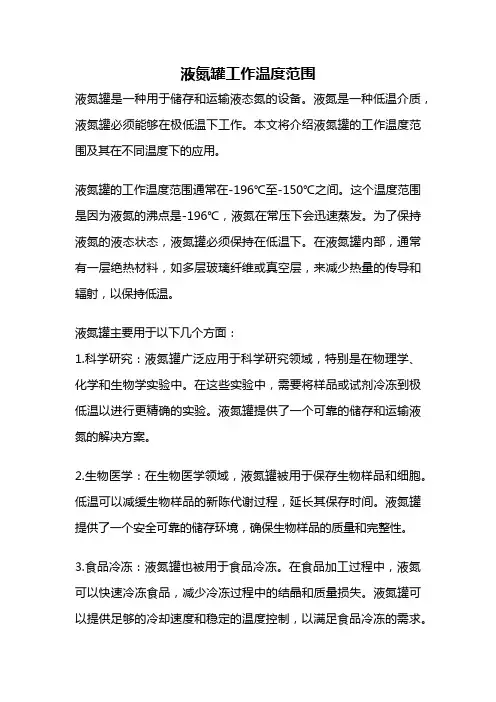 2. 液氮存储的原理液氮存储的主要原理是利用液氮的极低温度将样本冷冻并保存。